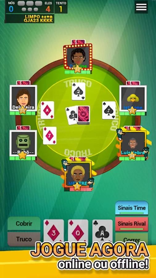 Online Truco and Offline Truco Game! Call family and friends and play free truco in the best card game in Brazil!