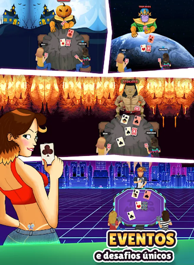 In OFF-LINE Mode you will find several maps and thematic phases, in addition to Leagues, Championships and Thematic Events. You can still face the Truco Bosses throughout the completed maps, which are super difficult and exciting!