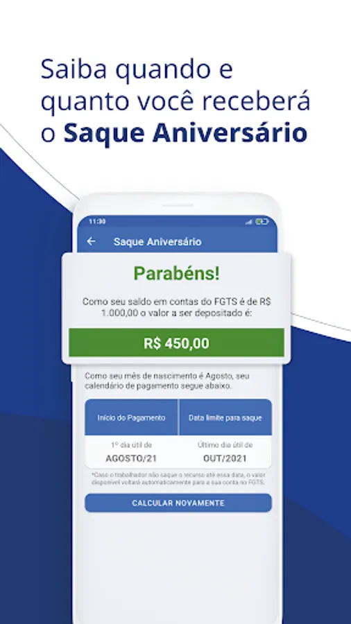 Download the app, do the labor calculation and find out right now when you can make the emergency withdrawal and the anniversary withdrawal from the Guarantee Fund. Simply fill in your CPF or NIS/PIS and you will have the updated FGTS amount in your hands.