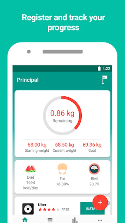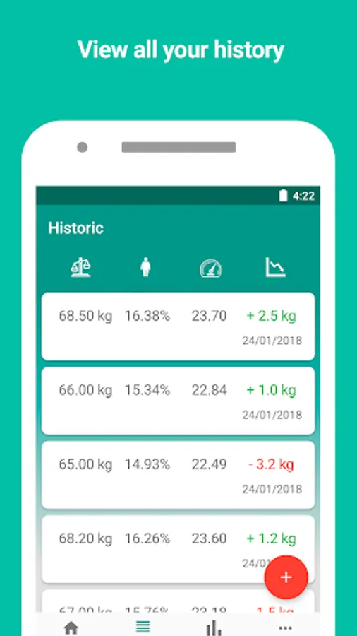 Follow the changes in your weight by recording daily and stay within your ideal weight range. Make an index to help you lose weight and stay healthy.