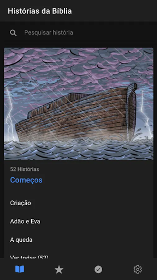 This story app has been organized into 5 categories, where more than 250 Bible stories are distributed. See the categories: