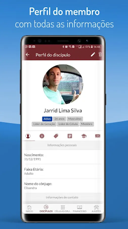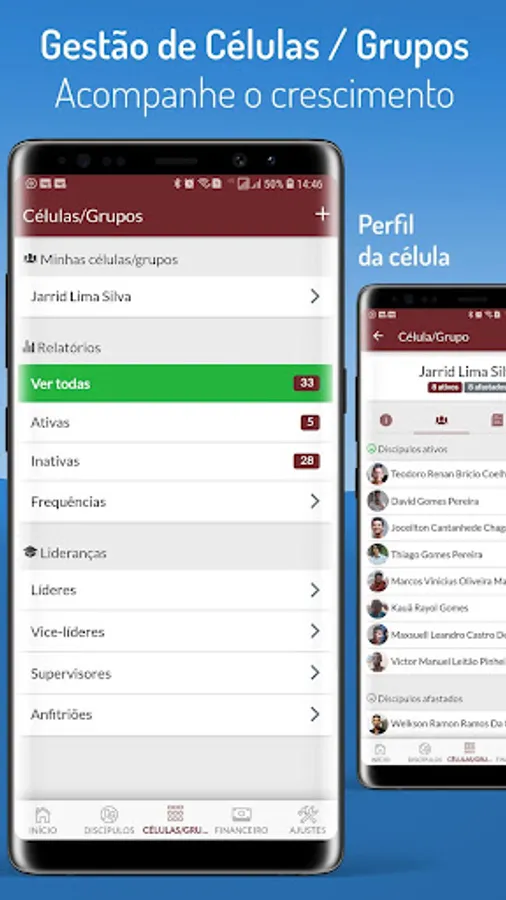 Get multiple reports. Find out how many disciples are active, away, men, women, teenagers, youth, children, the elderly, birthdays, etc ...
