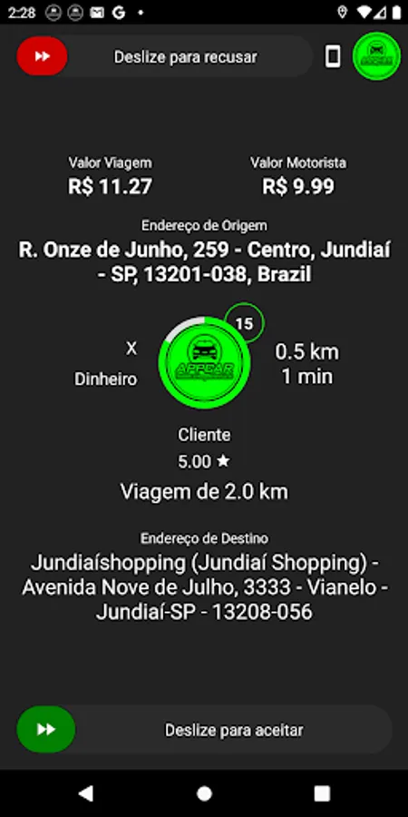 Our app allows the driver to receive new races and increase the professional's daily income.