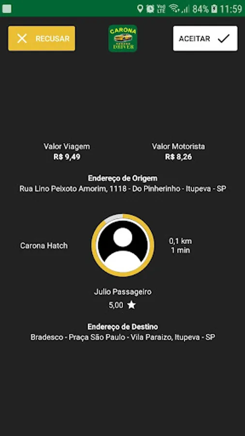 When you receive a race request, you receive a lot of information from the customer you are going to get, including departure and final destination, name, rating and number of trips made in the application, which creates more safety for the driver.