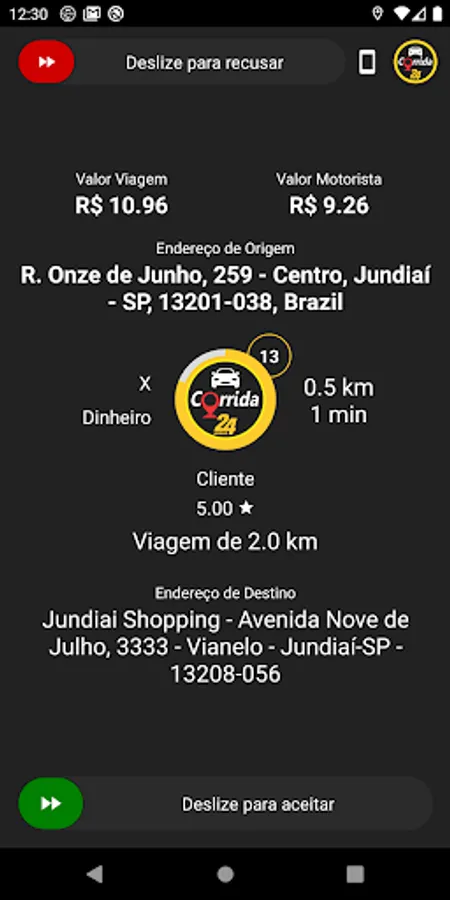 Our app allows the driver to receive new races and increase the professional's daily income.