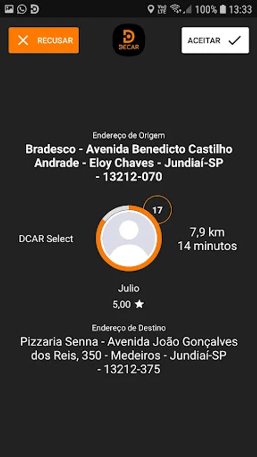 Our application allows the driver to receive new races and increase the professional's daily income.