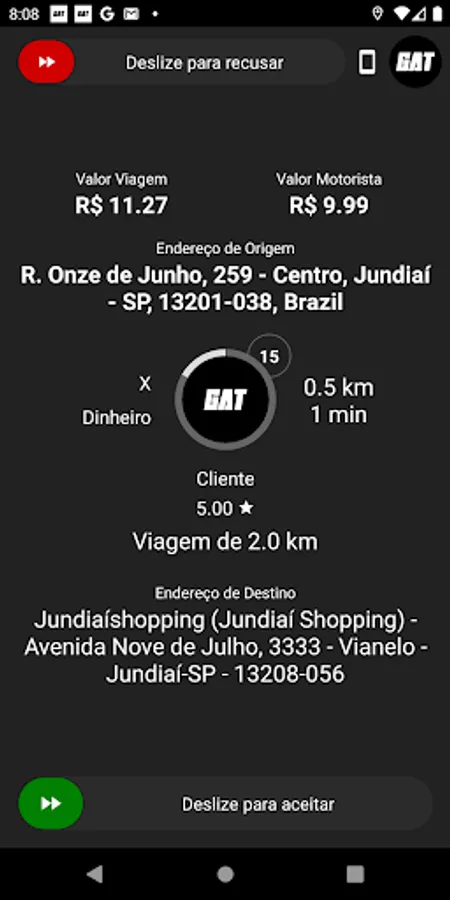 Our app allows the driver to receive new races and increase the professional's daily income.