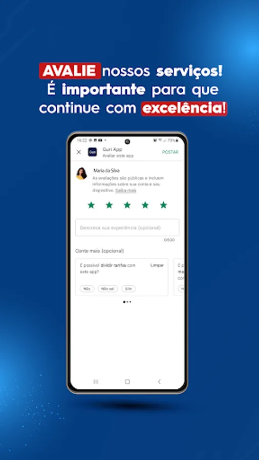 For all those who seek practicality and safety on a daily basis, through a service provided with excellence, by highly qualified drivers, with all the comfort that you and your family deserve, we developed the Guri App. Created in 2019, being today a highlight in mobility urban area, we are already in Rio Grande do Sul, Santa Catarina and Paraná, and we continue to expand throughout Brazil. Restless, we have the world ahead!