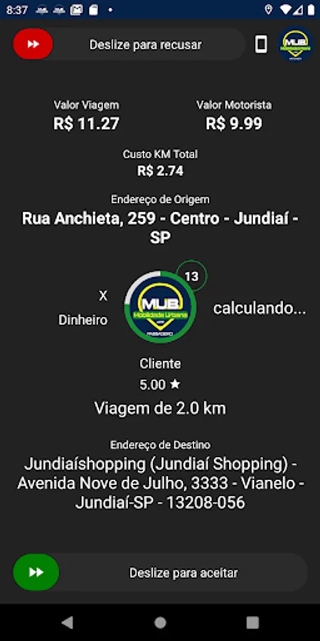 Our app allows the driver to receive new races and increase the professional's daily income.