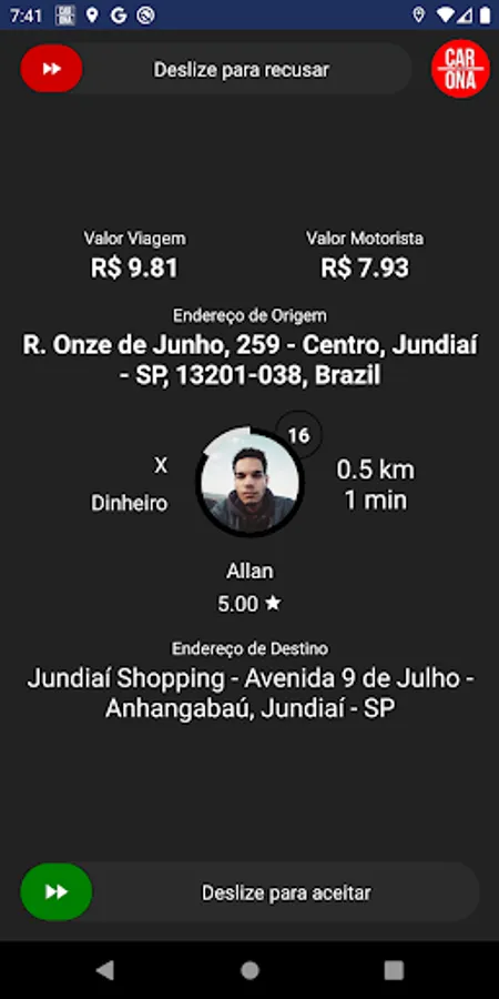 Our app allows the driver to receive new races and increase the professional's daily revenue.