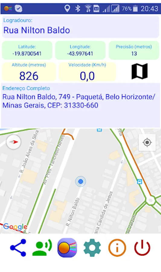 Want to know the street and the zip code of where you are? This application also shows the information about your current location as address, neighborhood, city and zip code.