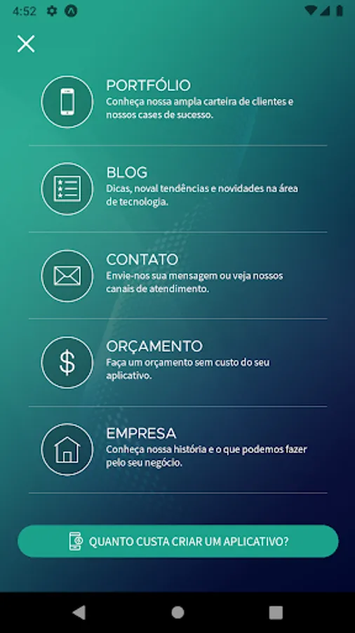 See in this app some success stories, stay on top of news in the world of mobile apps, contact us and ask for a quote for the development of your app!