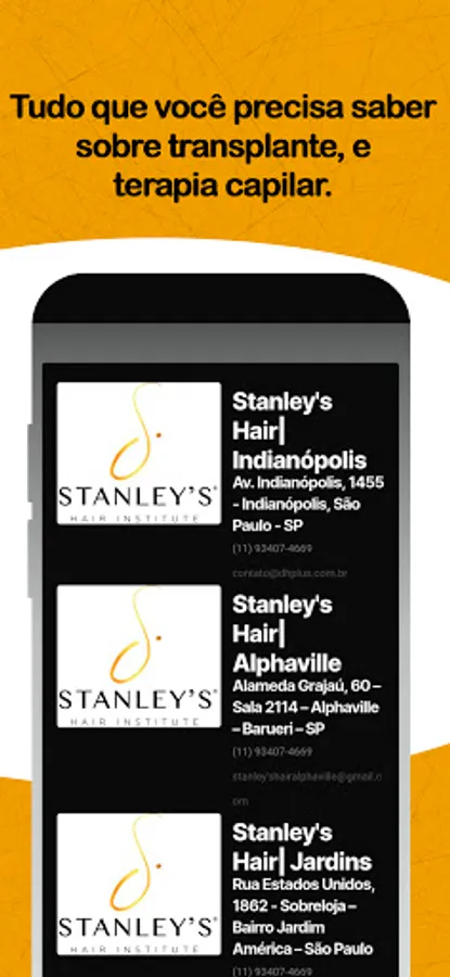 Stanley's Hair app is intended for all those who want to know everything about transplantation and hair therapies, access exclusive content, clear your doubts and find the unit closest to you.