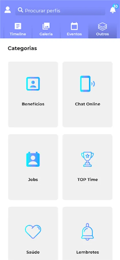 In "Benefits", it is possible to access the categories available within the company, such as medical, pharmacy and dental insurance.