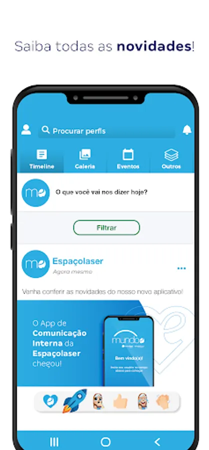 The app is an exclusive internal communication tool for Grupo Espaçolaser employees.