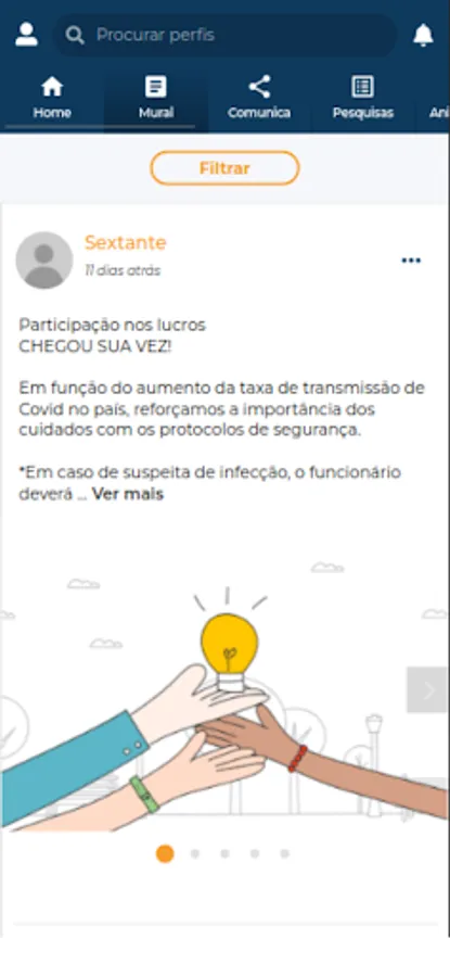 Comunica Sextante is an exclusive communication tool for Editora Sextante employees in a safe and friendly environment, which encourages the integration and collaboration of our team.