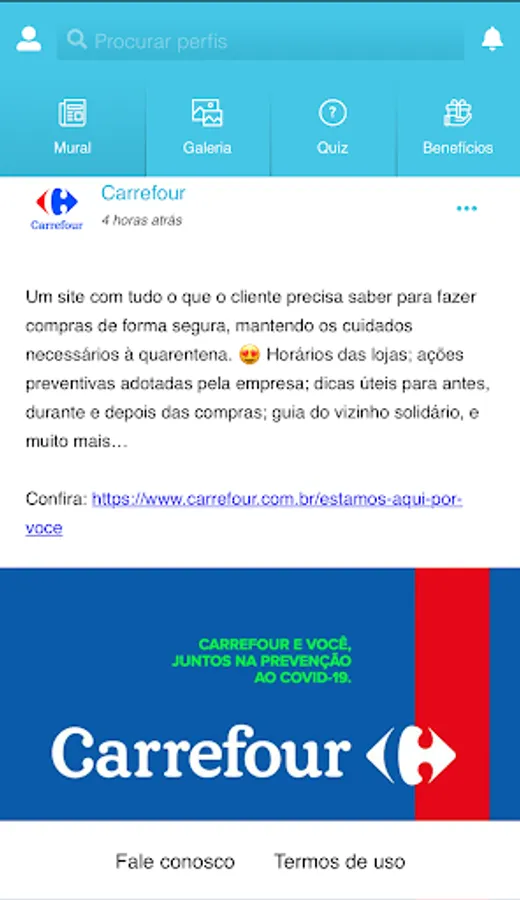 - Mural: stay within the news of Carrefour and his colleagues. In addition to writing your own posts, you can enjoy, comment and share what other people are talking about.