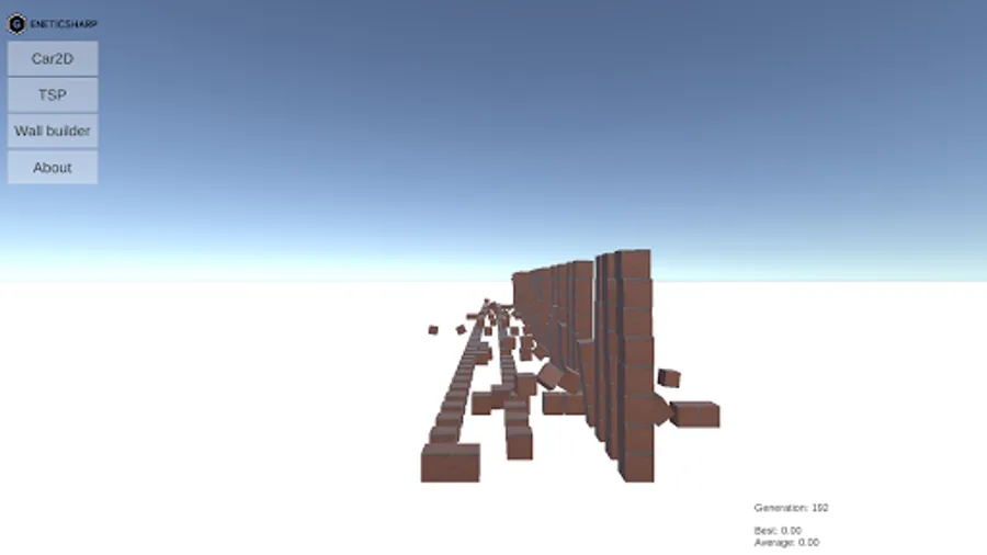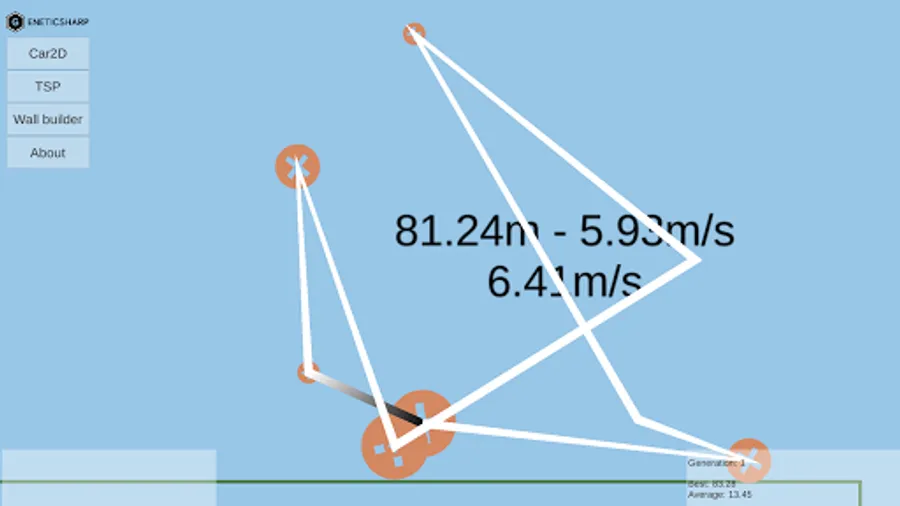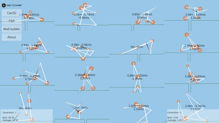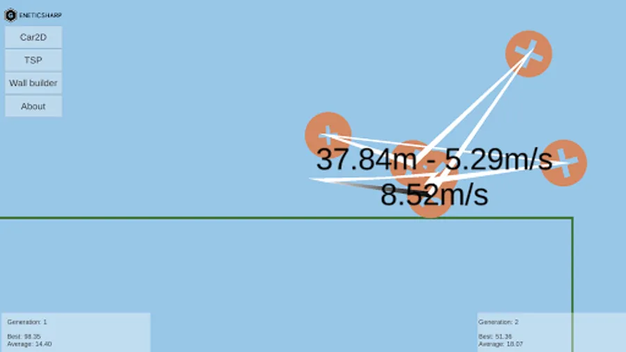 Based on famous BoxCar2D, this sample uses a genetic algorithm to create car designs to overcome road challenges, like gaps, hills, and obstacles.