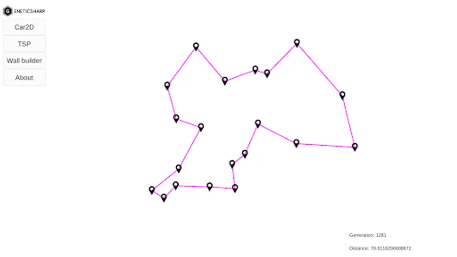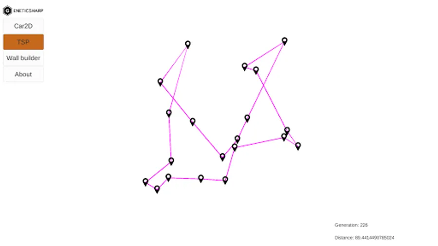 The classic TSP sample, but in this, we can change the cities positions while the genetic algorithm is running and see how it finds the best route.