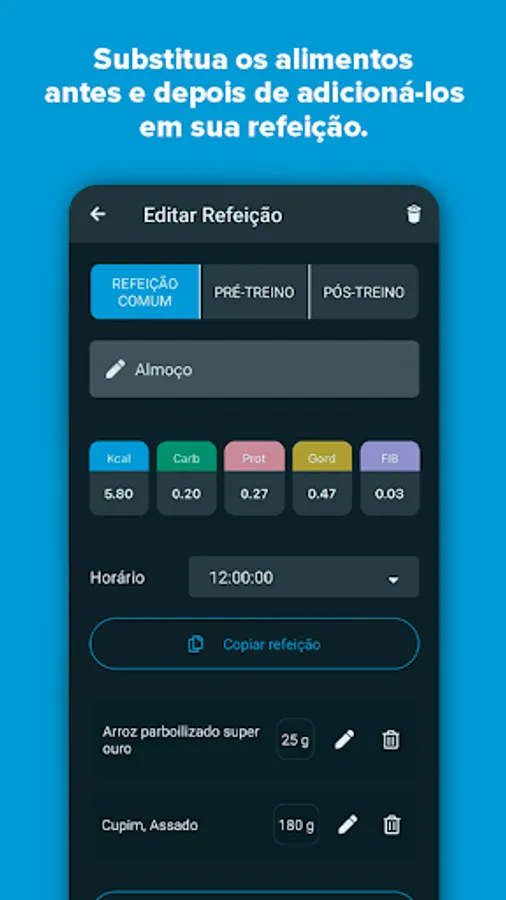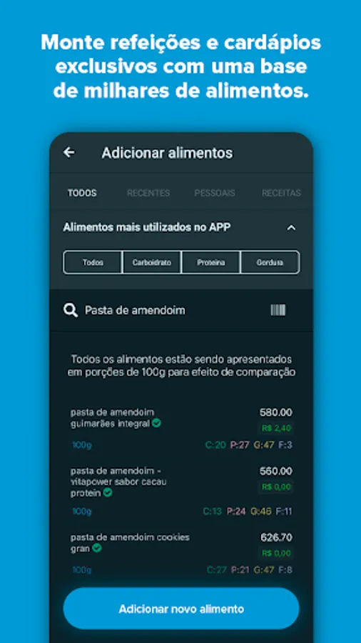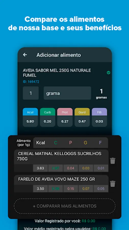 For new registrations, the app will display the name and the user will be able to complete the other nutritional information. These foods registered by users can be viewed, consulted and edited (if necessary) by other users of the App.