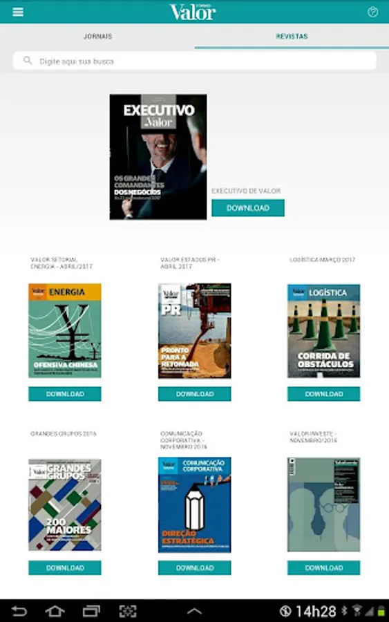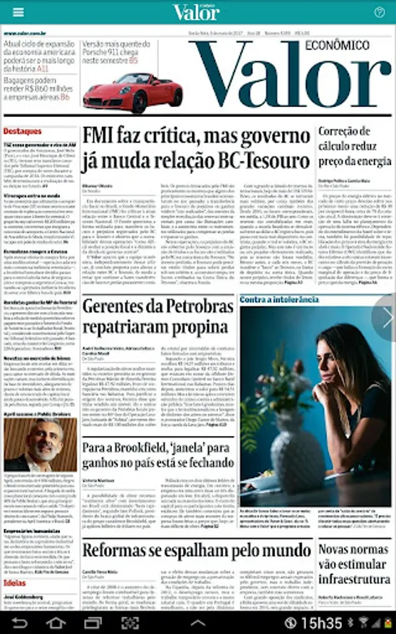 Read the newspaper's digital version of Valor Econômico on your tablet. Monday to Friday, the most comprehensive economic coverage, business, law and the country's finances.