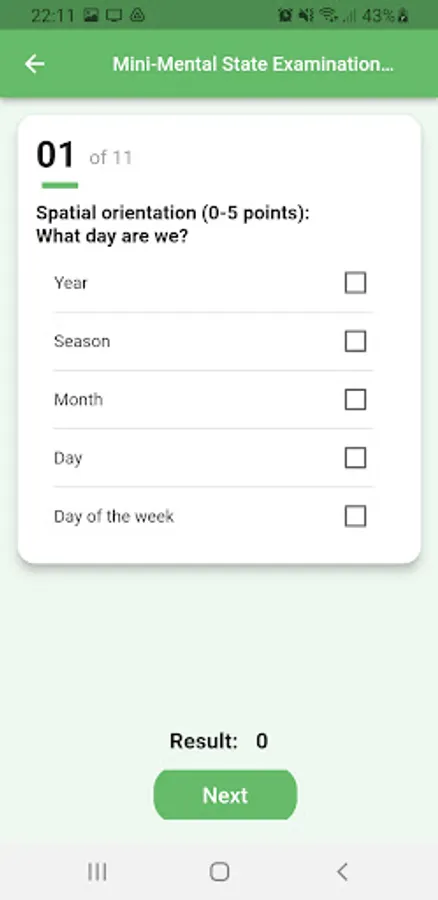 It is a quick reference of research and aims to facilitate the execution of some cognitive tests, such as Mini-Mental State Examination (MMSE), Clock Test, Verbal Fluency Test, Geriatric Depression Scale, Katz Examination and Walk Test of 6 Minutes.