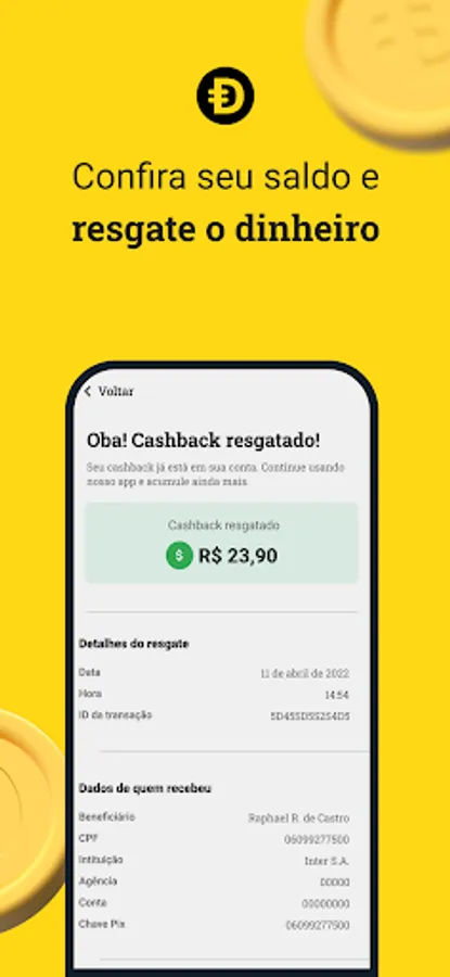 - From 20 reais you can transfer your money to your bank or savings account and use it however you want