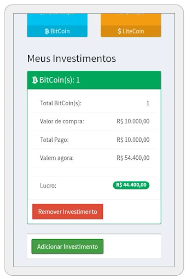 Application created to make it easy to calculate your profits and / or losses on their investments in the two main criptomoedas.