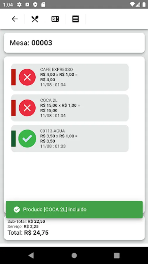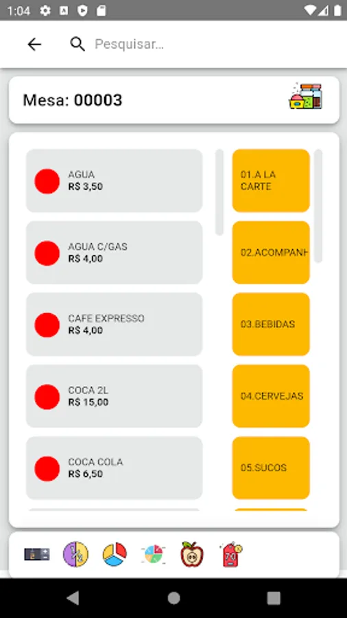 App features: Opening tables, placing orders, consulting consumption, mapping tables, printing bills, printing orders for kitchen/bar.