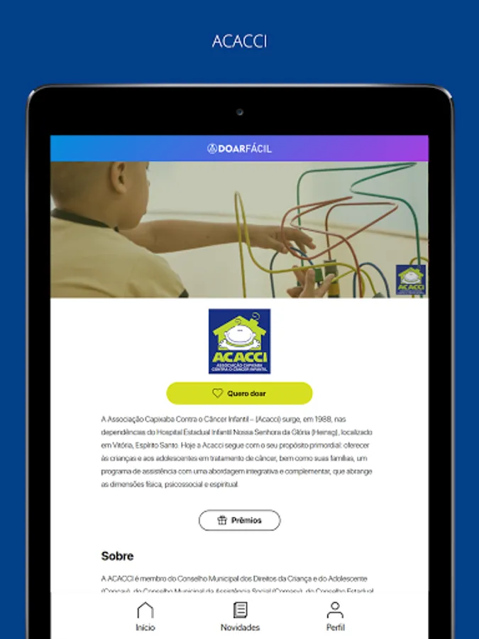ACACCI is a member of the Municipal Council for the Rights of Children and Adolescents (Concav), the Municipal Council for Social Assistance (Comasv), the State Council for Social Assistance (Ceas). He has a Certificate of Beneficent Entity for Social Assistance in the Health Area (CEBAS). In 2018, she was awarded the Golden Attitude Trophy, in the Volunteering category, by the Ronald McDonald Institute. In 2020, the institution was the winner of the national Gold September contest, promoted by Coniacc, and its campaign was published nationwide through the support houses.