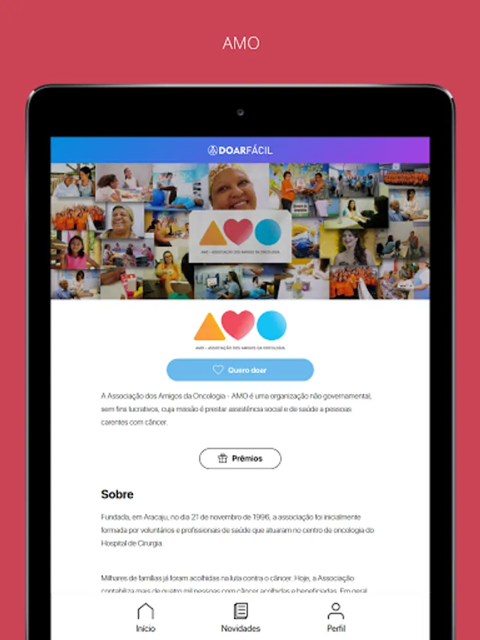 The Association of Friends of Oncology - AMO is a non-governmental, non-profit organization whose mission is to provide social and health assistance to people in need with cancer.