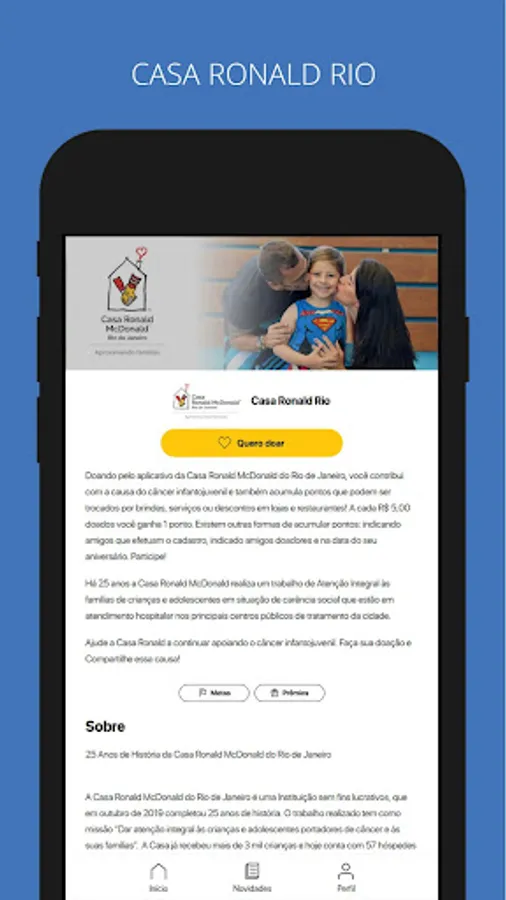 Download the APP, donate and help Casa Ronald McDonald do Rio transform lives! Be a donor and share this chain of good.