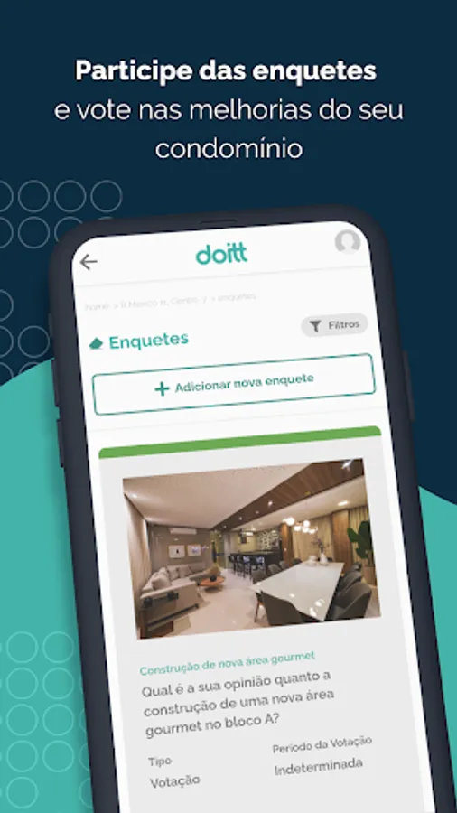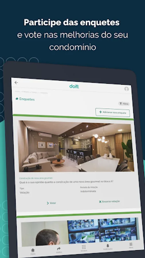 Follow accountability, book spaces, participate in surveys proposed for your condominium.