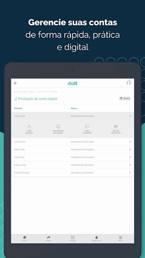 Perform operational back-end processes through a complete platform. Request admission or termination of an employee and have the processing of personnel department procedures carried out. Upload the condominium bills and let the Doitt platform make the payments.