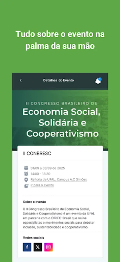 Don't waste any more time, download it now and take your participation in the II Brazilian Congress of Social, Solidarity Economy, and Cooperatives to a new level of enrichment!
