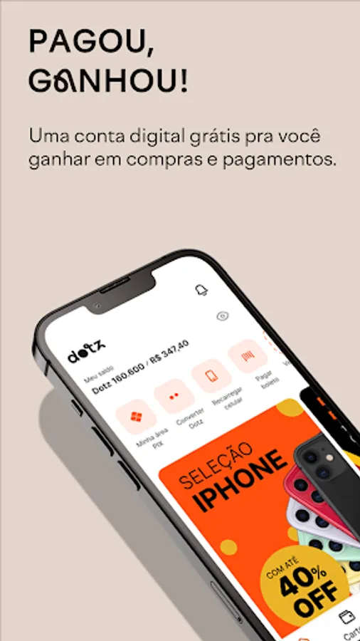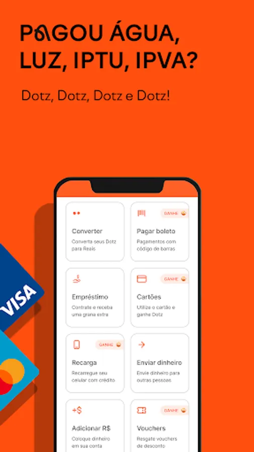 With no fees and no effort, in the Dotz Super App you can consult and exchange your Dotz, make purchases, request your card, move money, make payments and transfers and still earn lots of Dotz!