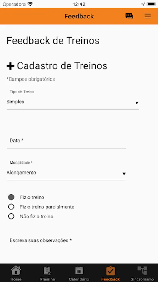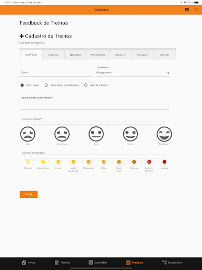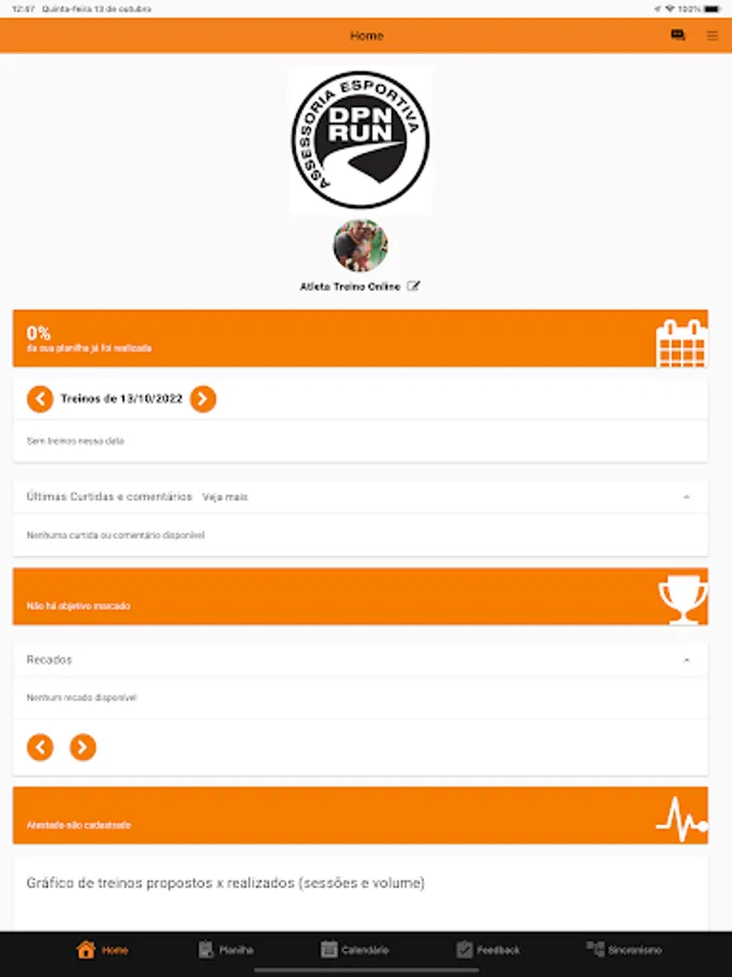 Application for athletes of DPN Run Assessoria Esportiva that has the following features: