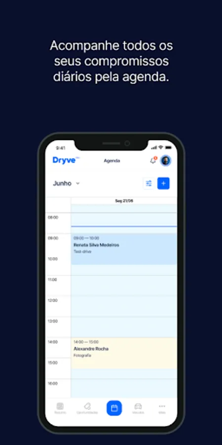 Keep track of all your events, whether in person or remotely via the agenda, being possible to schedule Test-dryve, Visit, Photography and others.