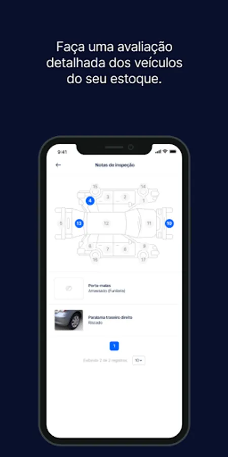 You can register or edit a vehicle, upload photos of it and remove the background, and you can attach photos of inspection notes.
