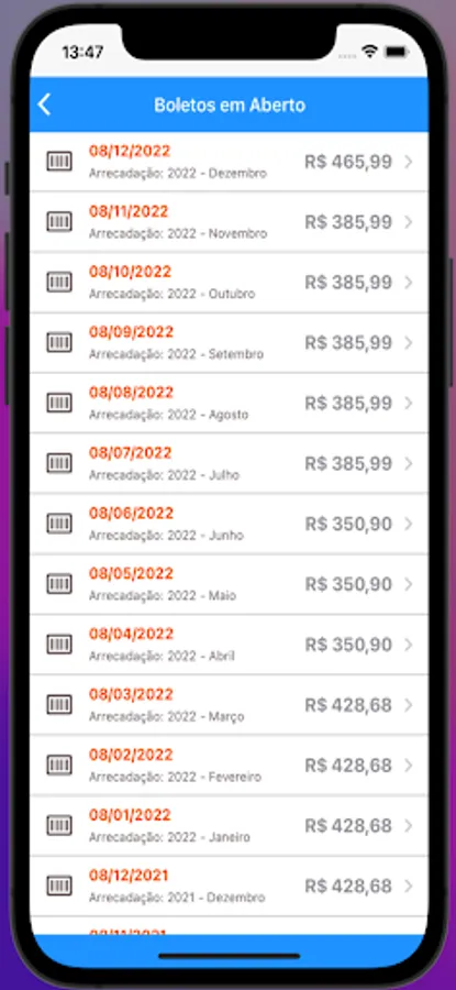 Application for receipt of slips, renegotiation of debts, communication, Documents and history of slips paid.