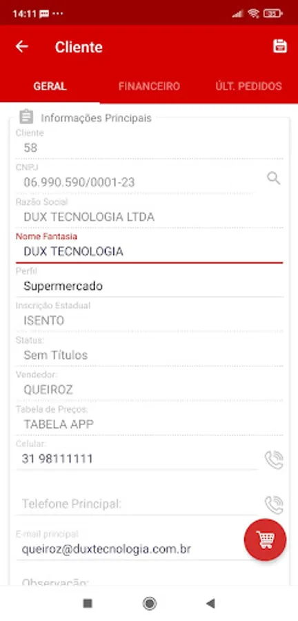 Integrated with the Sankhya ERP system, the application allows the salesperson to have access to various information essential to their work. Customer and product registration, issuing orders and finance are some of the many features that are available quickly and conveniently, right from your cell phone.