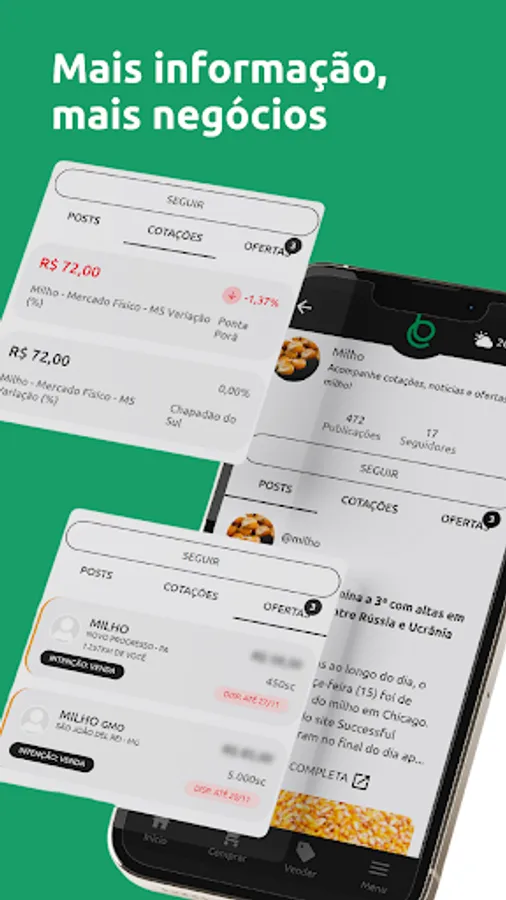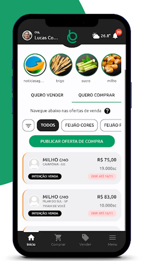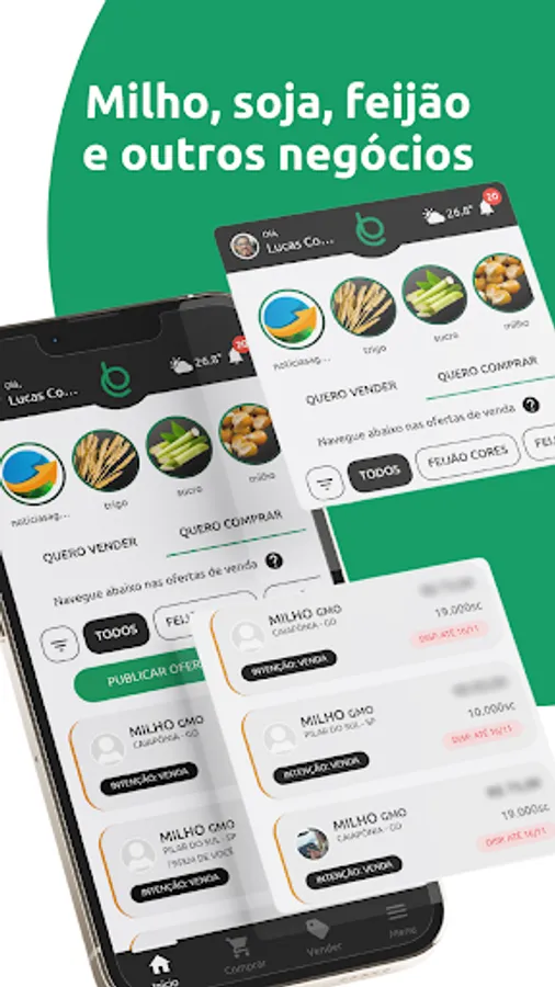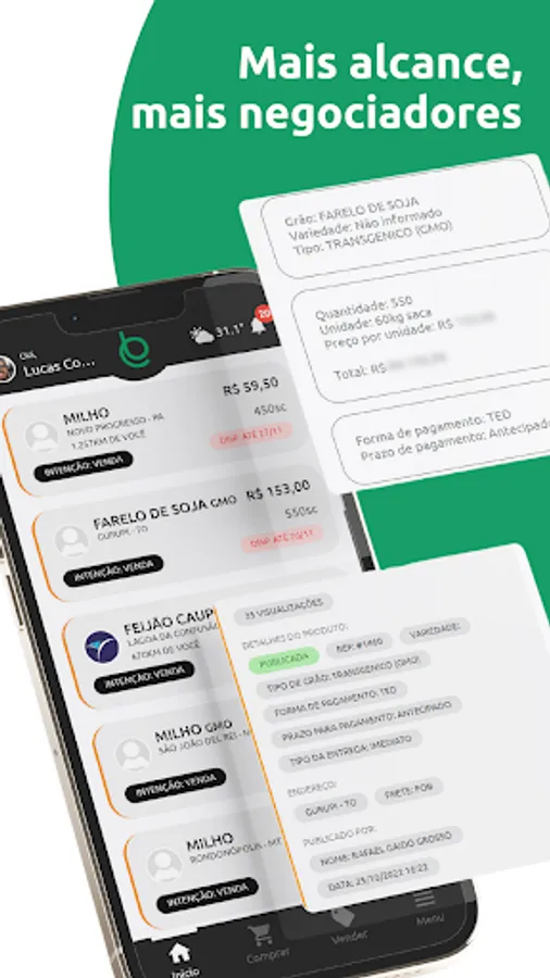The app was developed thinking about the entire negotiation journey of the rural producer, buyer (grain industry) or grain broker.