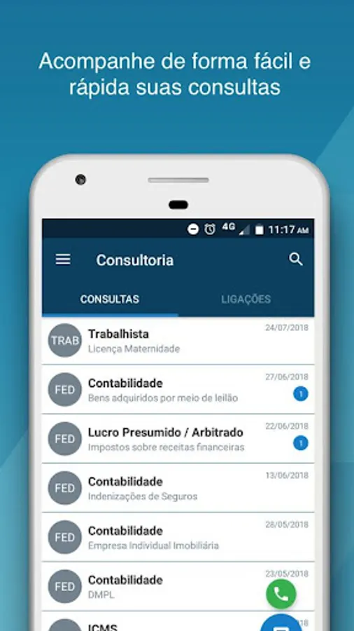 With a few clicks you view and send your queries and can also have direct contact with the consulting, through voice calls. Are you talking to the consultant, wherever you are.
