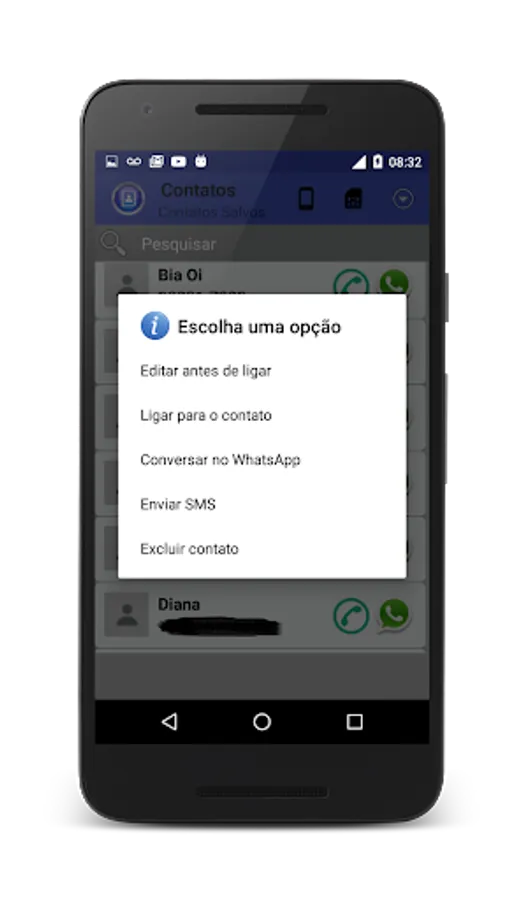 To Make Calls, Chat on WhatsApp, Send SMS or Delete a Contact in the Simple Contact Book, just press on the Contact and select the desired option from the menu.