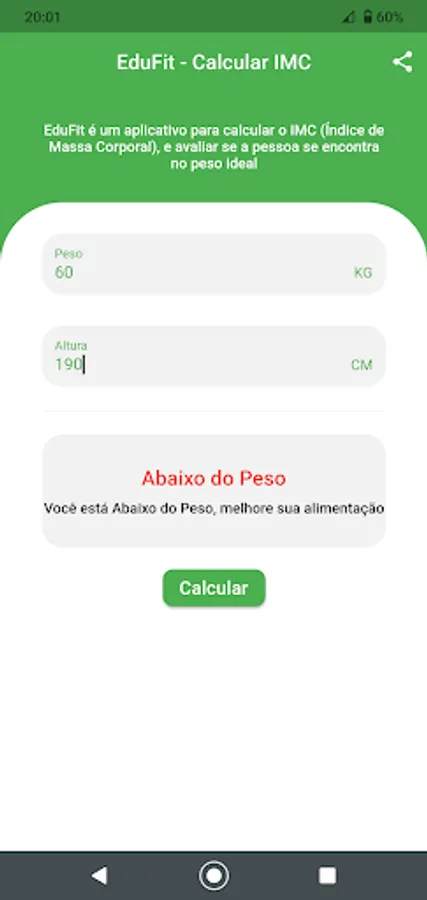 To calculate your BMI, just enter your Weight (in KG) and your Height (in CM) and click on the Calculate button.