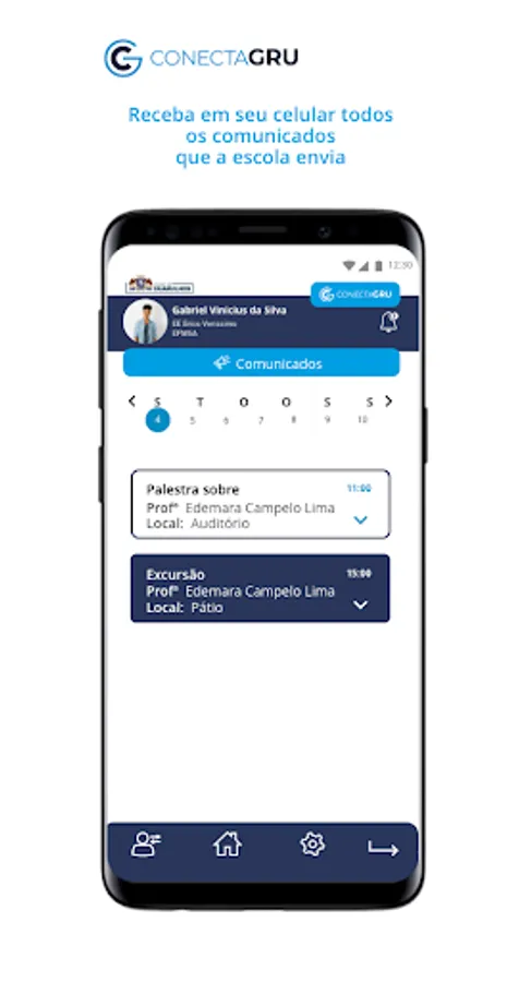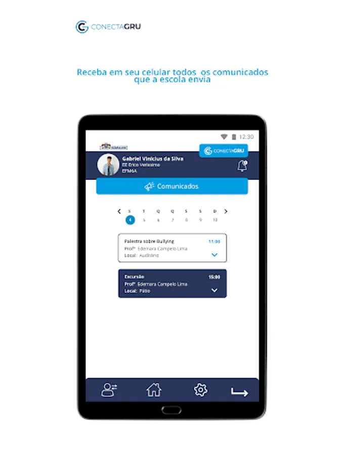 With ConectaGRU, you have the main City Hall services available in a single app. With it, you can update contact details, consult information such as the school calendar and school meals, in addition to having access to announcements sent by the school.
