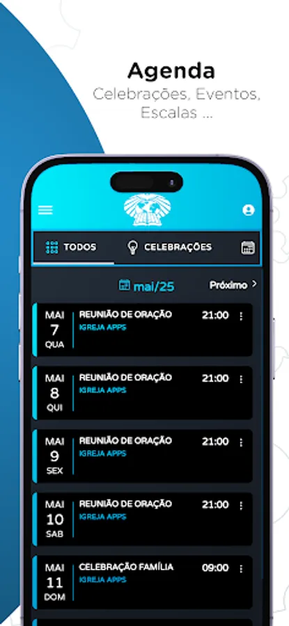 🗓️ You can also organize all kinds of events, such as: Bible Schools, Camps, and Training Courses; 💬 Through the Message Board, you can stay up to date with all the Church's news and also communicate with others.