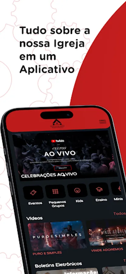 🎶 Content (Audio/Video): Allows you to view and listen to the Church's content available in the App;