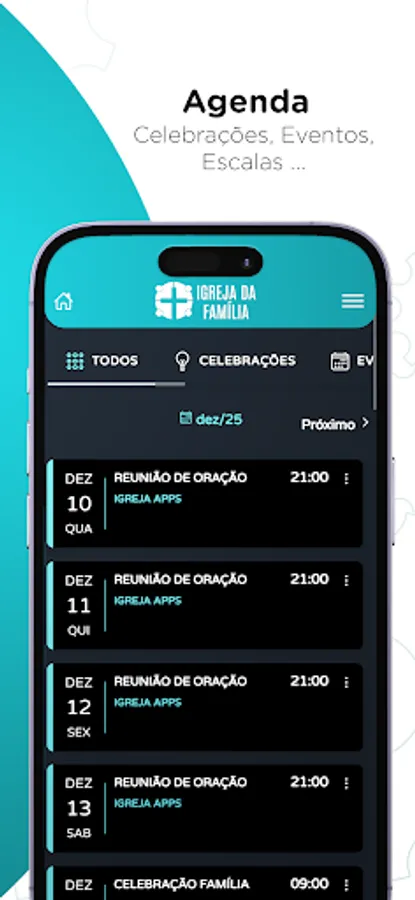 ⛪ Schedule: View a complete calendar of Services, Events, and your schedule in Church Ministries/Departments;
