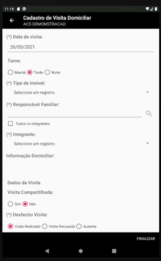 Application for managing the daily work of the community health agent, where you can keep up-to-date control of patient data in your micro area, having control of individual records, control of home records and control of home visits.